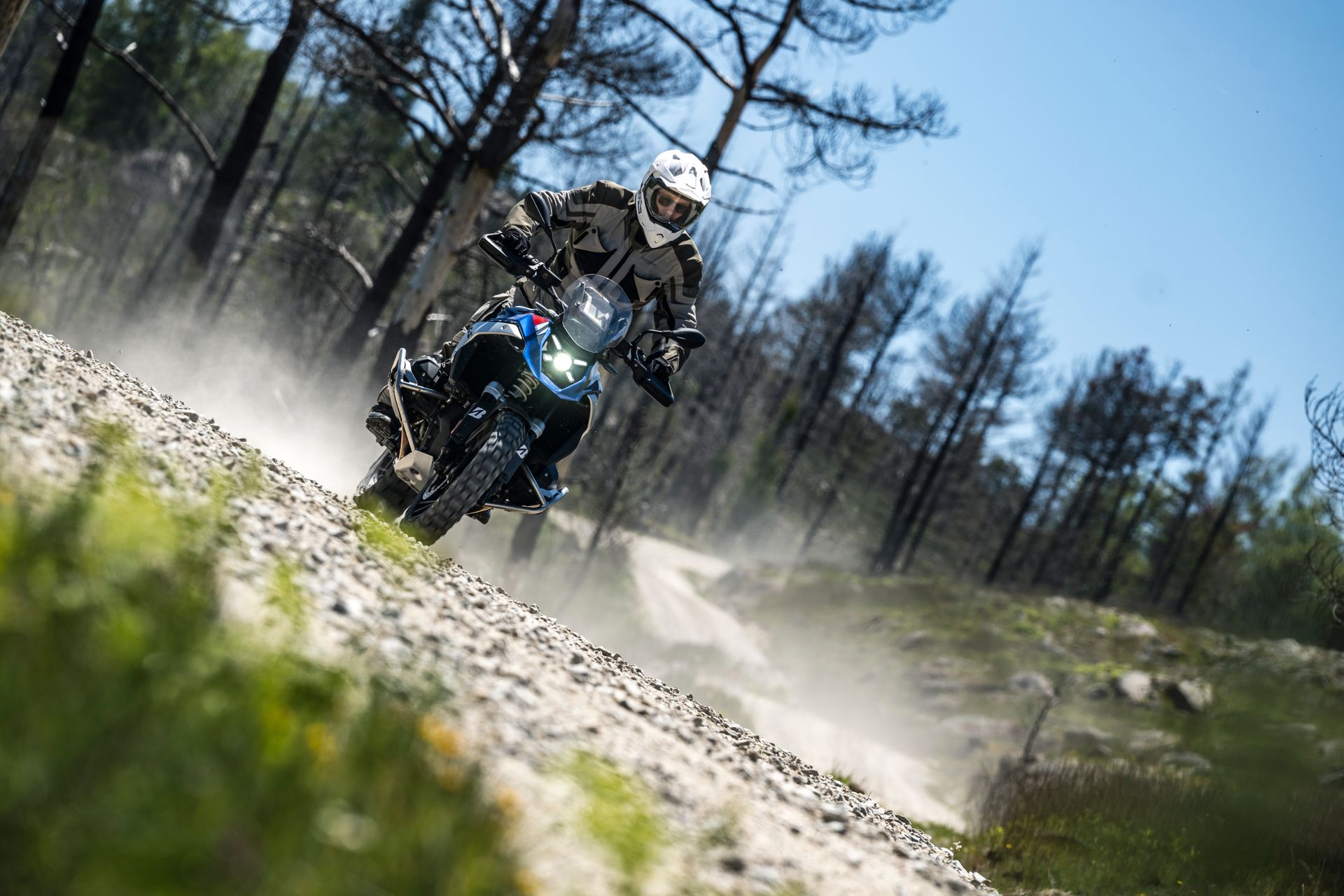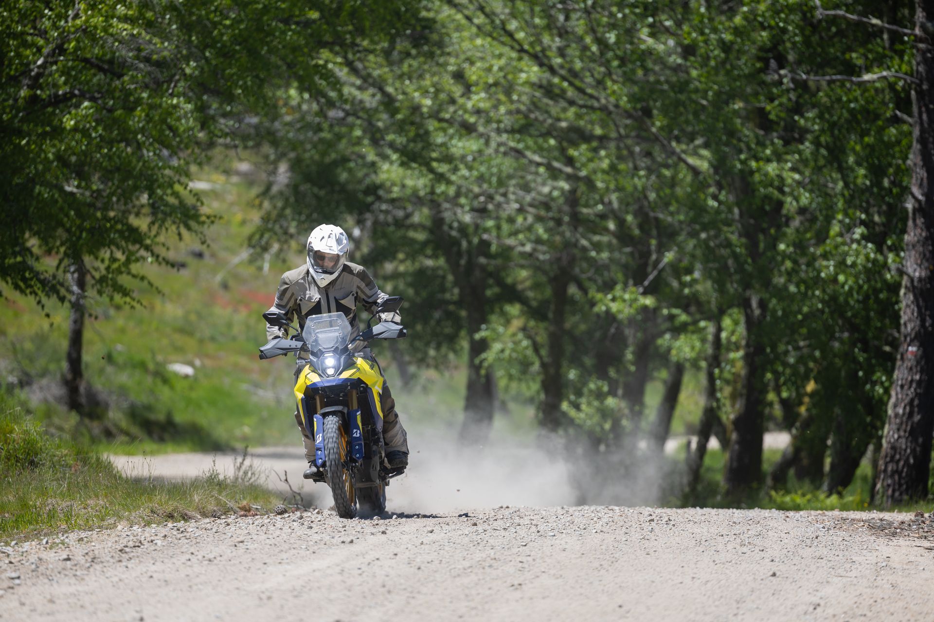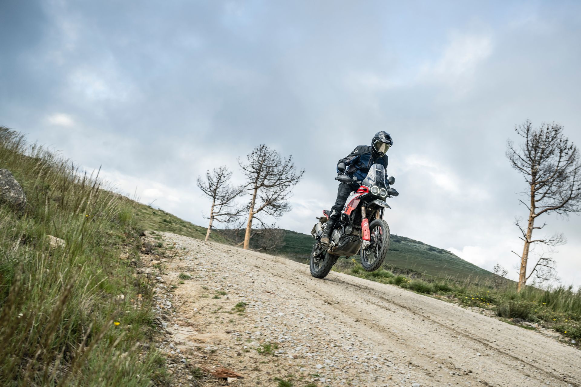 Seine stabile Karkasse bewältigt auch abseits befestigter Wege Unebenheiten und kleine Felskanten gut. Der Grip auf trockenem Schotter ist solide und, solange man nicht im Rallyetempo fährt, bleibt auch der Bremsweg positiv überschaubar.