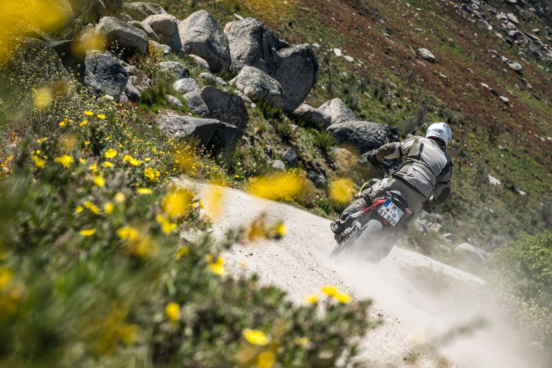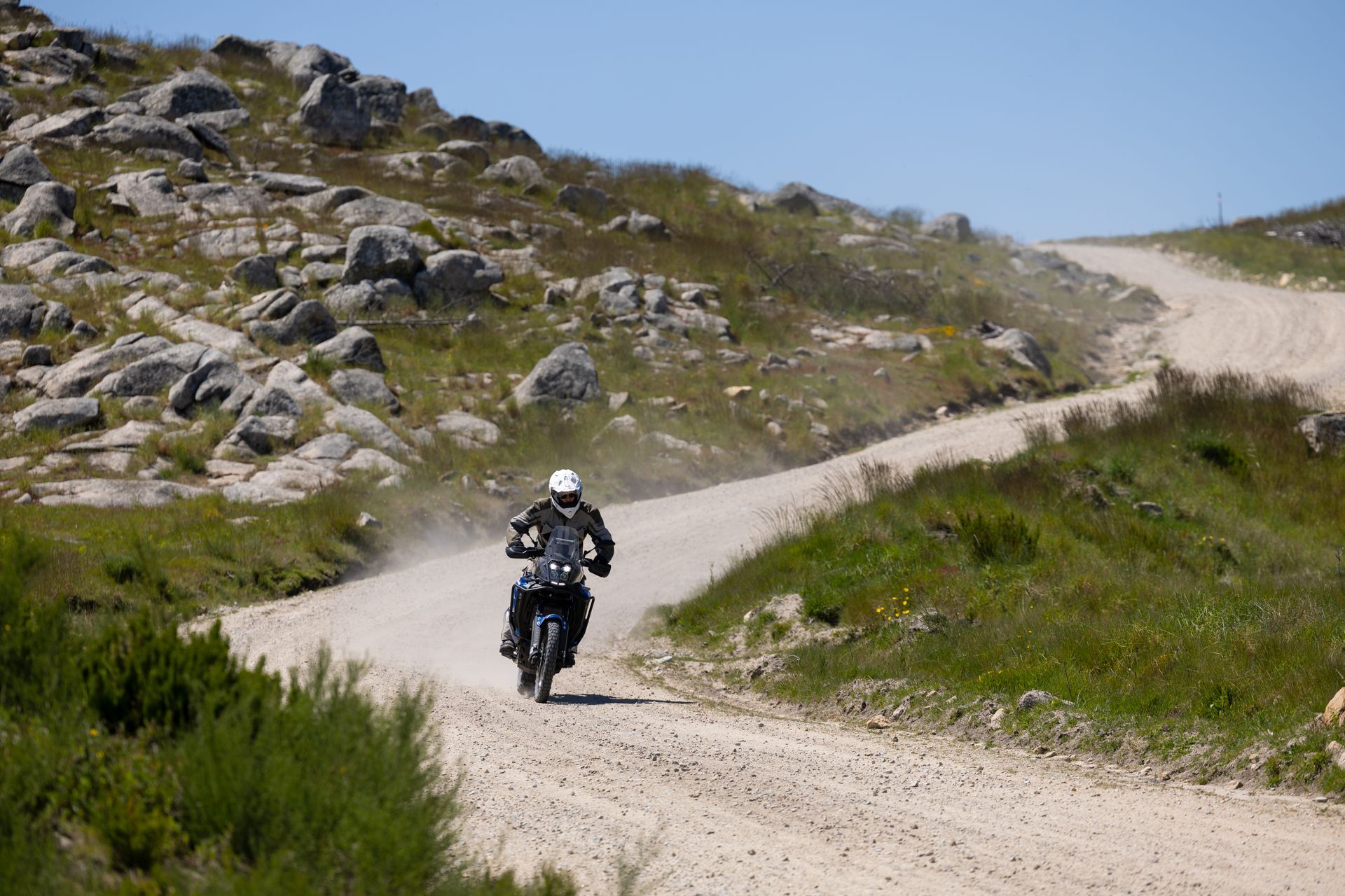 Der Bridgestone AT41 zeigt seine Stärken eindeutig auf der Straße, wo er mit ausgezeichnetem Grip überzeugt und bei jedem Wetter gut funktioniert. Selbst mit den stärksten Drehmomenten der großen Reise-Enduros hier in Portugal kommt er spielend zurecht.