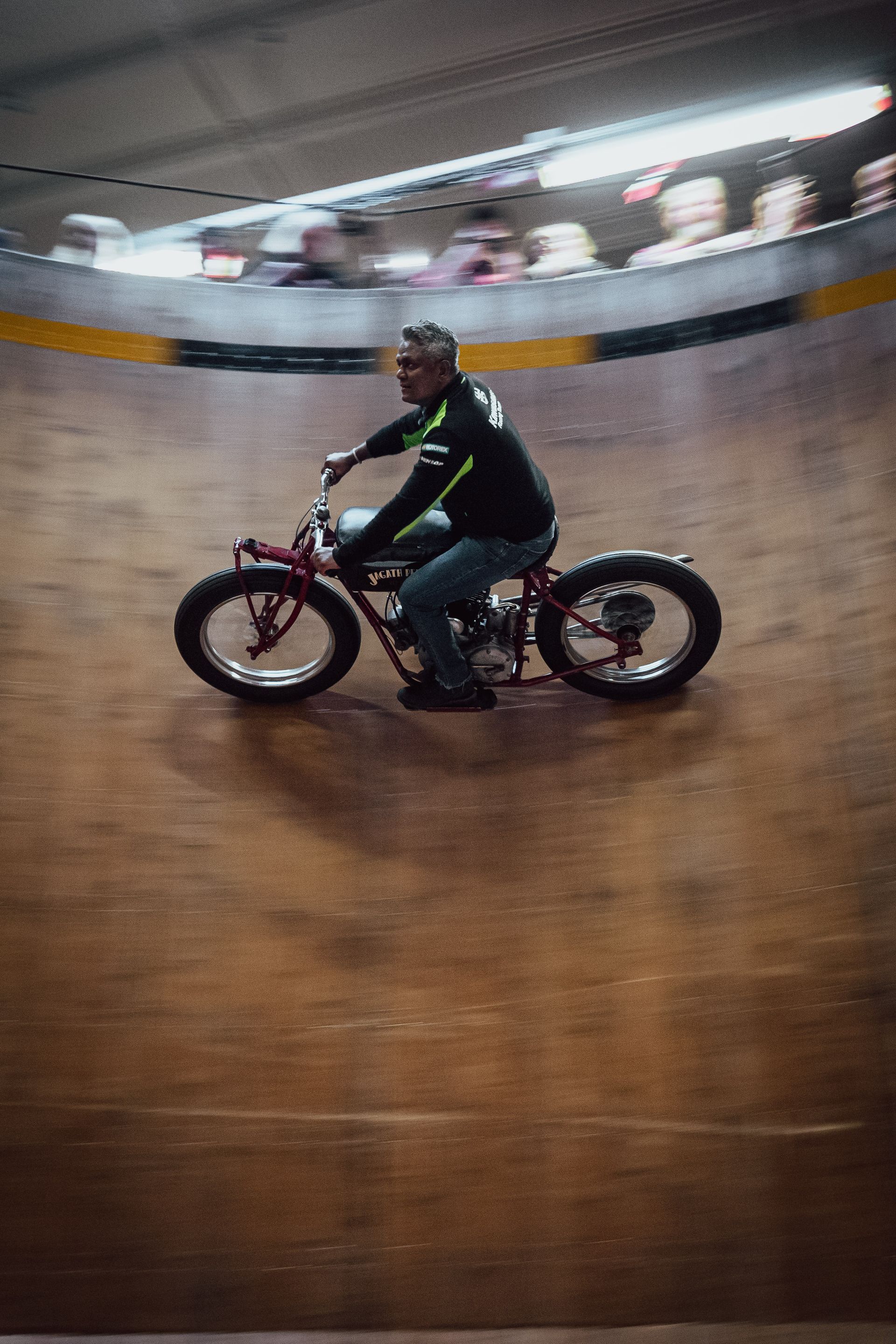 beim waghalsigen und spaßigen Slow Race auf Pocket Bikes, gebattelt, wer die besseren Fahrkünste hat.