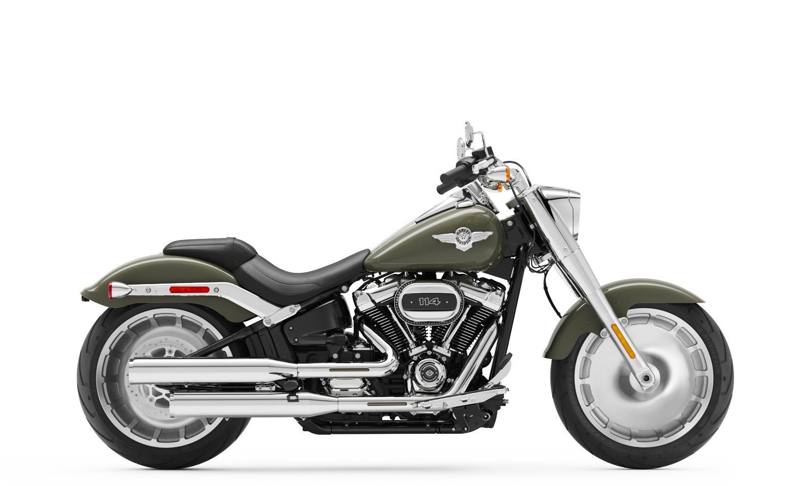 Die Fat Boy 114 zählt seit Jahrzehnten zu den beeindruckendsten Erscheinungen im HarleyDavidson-Portfolio. Für 2021 hat Harley-Davidson ihren Look überarbeitet und aufgehellt,