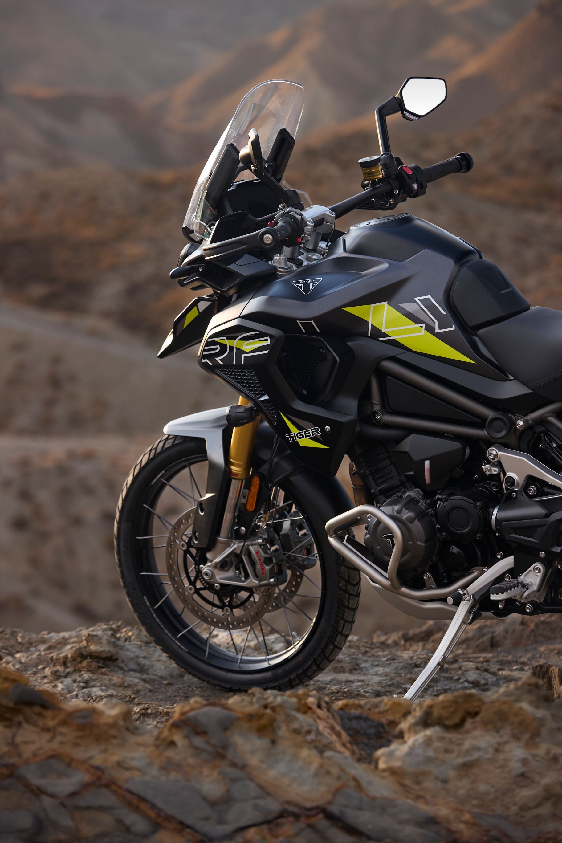 Die Alpine Edition wurde für die Erkundung schneebedeckter Gipfelwelten entwickelt und basiert auf der straßenorientierten Tiger 900 GT Pro. Sie verfügt über verbesserte fahrerorientierte Technologie und eine neue Lackierung. Die Tiger 900 Alpine Edition ist in Snowdonia White und Sapphire Black mit Akzenten in Aegean Blue erhältlich. Die Desert Edition wurde für anspruchsvolle Geländeausflüge – nicht nur in Wüstengegenden – entwickelt und basiert auf der erfolgreichen Tiger 900 Rally Pro. Ihr Design unterstreicht die bekannten Geländequalitäten der Tiger.