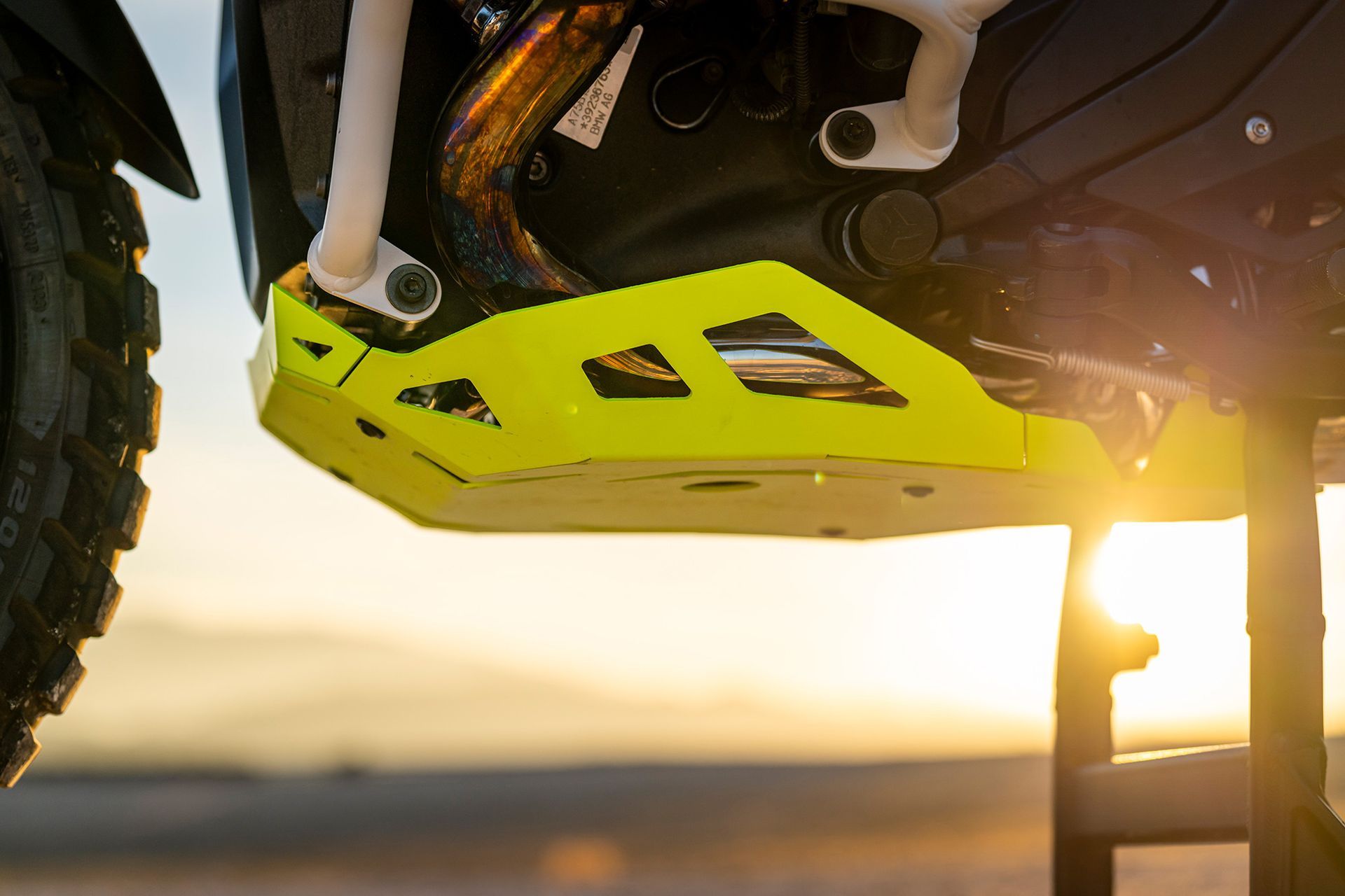 Zweifellos leisten die unverwüstlich konstruierten ULTIMATE Motor- und Tankschutzbügel aus erstklassigem, rostfreien Edelstahl ihren Beitrag zum Look der ULTIMA genauso wie der Wasserkühlerschutz oder die Einspritzanlagen-Abdeckungen auf den Zylindern. Den Hauptakzent aber setzen die perfekt konturierte AKTIVKOMFORT Fahrer- und Beifahrersitzbank und der robuste ULTIMATE Motorschutz in Neongelb, der deutlich mehr Flankenschutz als das Serienpendant bietet. Überhaupt erinnern die bewusst gesetzten neonfarbenen Flächen an die Aufsehen erregende X2 von Wunderlich, das innovative erste GS-Konzept mit angetriebenem Vorderrad und Rückwärtsgang.