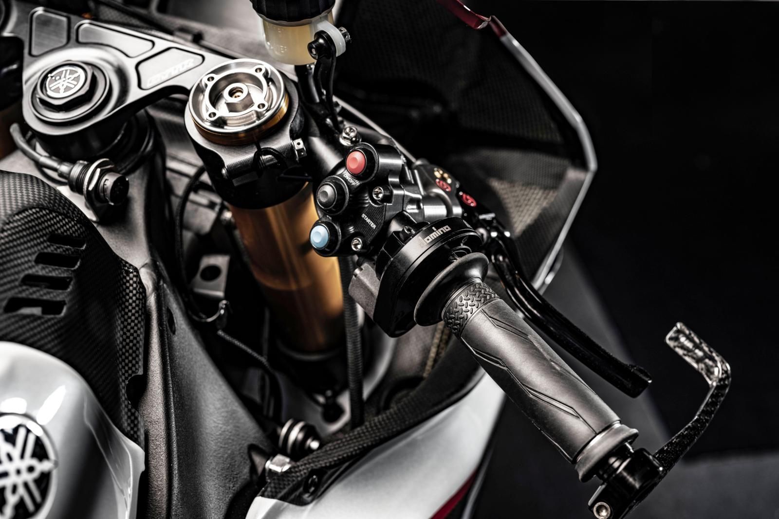 Eine speziell für Yamahas WorldSBK-Rennprogramm entwickelte Unterzugschwinge verbessert den maximalen Schräglagenwinkel und den Grip am Hinterrad und Brembo-Bremskomponenten vorne und hinten sorgen für die ultimative Bremsleistung. Die Karbon-Verkleidung ist ultrastark, leicht und wurde zusammen mit der Scheibe so konzipiert, dass sie optimale aerodynamische Eigenschaften bietet.