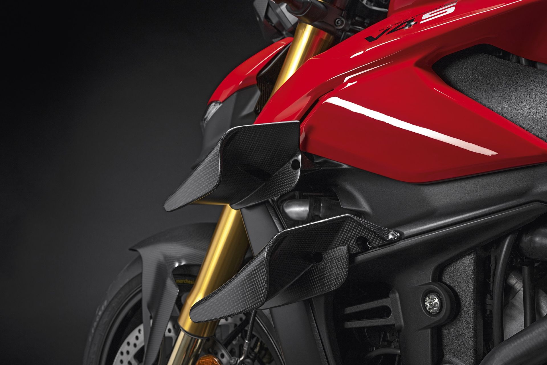 Die Streetfighter V4 wird dank zahlreicher Carbon-Anbauteile noch aggressiver und sportlicher. Erhältlich sind unter anderem Kotflügel für vorne und hinten (kompatibel mit Slicks und Reifenwärmern), eine vor dem Fahrtwind schützende Cockpit-Verkleidung, eine Tankabdeckung, eine Ritzelabdeckung und die Flügel aus Carbon.