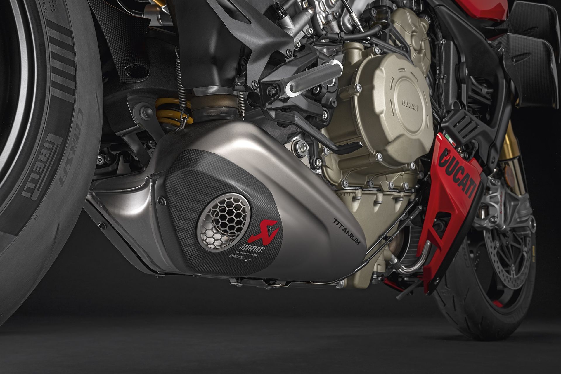 Wer die Leistung der Streetfighter V4 auch auf der Rennstrecke nutzen möchte, kann die in Zusammenarbeit mit Ducati Corse entwickelte Akrapovič-Titanauspuffanlage verwenden. Mit einem Geräuschpegel von weniger als 105 dB schließt sie den Einsatz an Tagen mit Lärmbeschränkungen nicht aus, garantiert aber dennoch eine deutliche Leistungssteigerung.