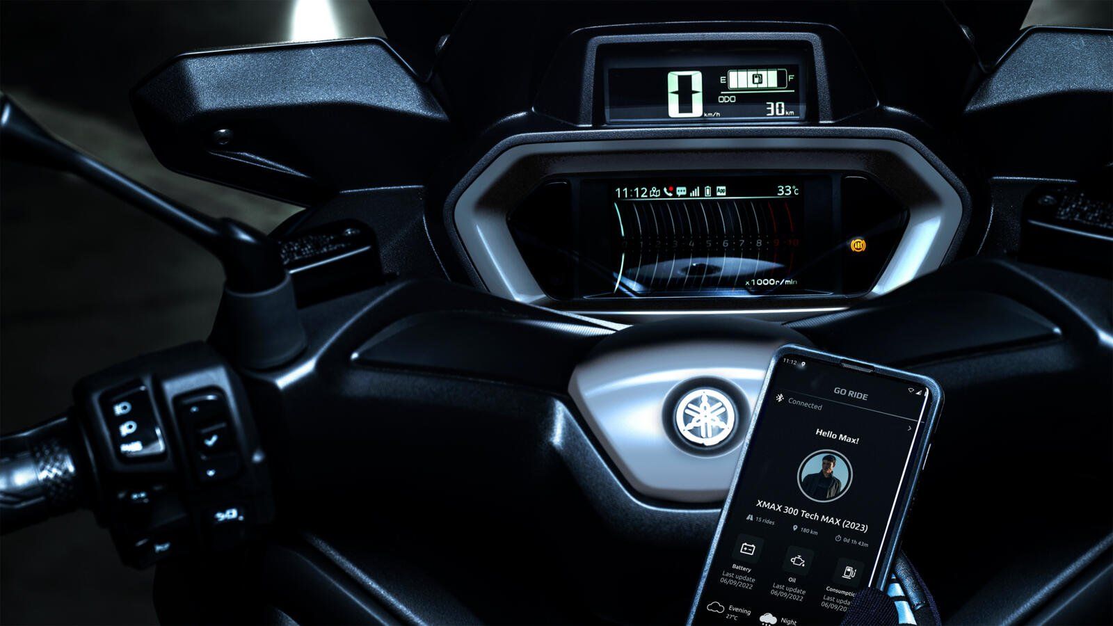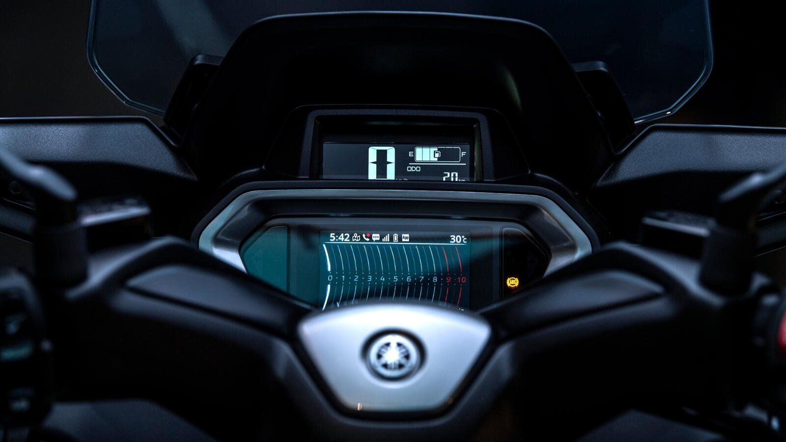 Die eingebaute Communication Control Unit (CCU) ermöglicht mithilfe der Yamaha MyRide App die Bluetooth-Verbindung zwischen dem Roller und dem Smartphone des Benutzers. Das 4,2 Zoll-TFT-Farbdisplay kann eingehende Nachrichten, E-Mails und Benachrichtigungen auf dem Display anzeigen. Auch das Abspielen von Musik und weitere SmartphoneFunktionen können über das Display bedient werden, wenn der Fahrer ein Headset verwendet.
