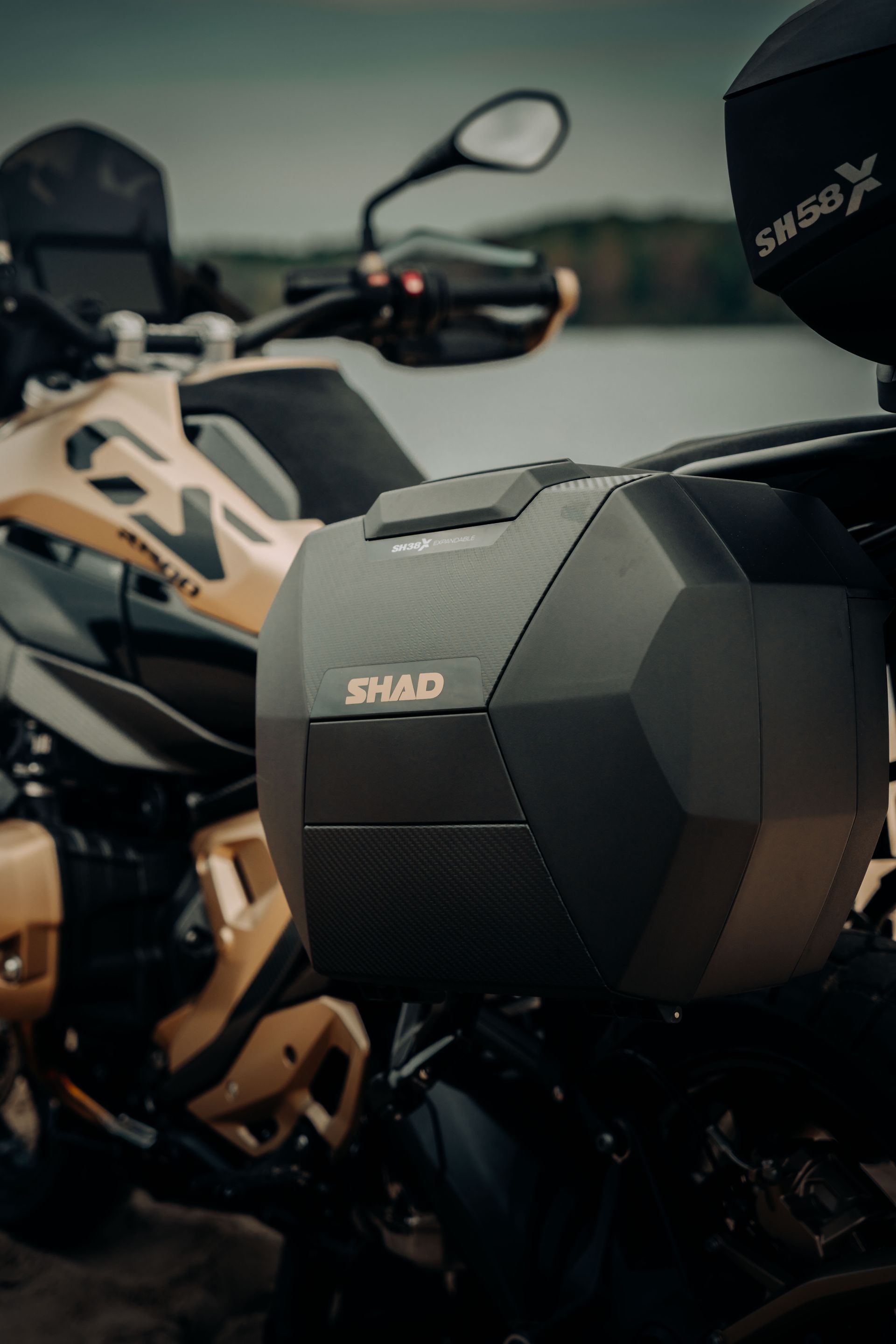 Stilvoll und sicher! Doch das war noch nicht alles: dieses edle und ultraleichte Material befindet sich auch auf dem gesamten Shad-Kofferset, sowie auf dem imposanten Auspuff.