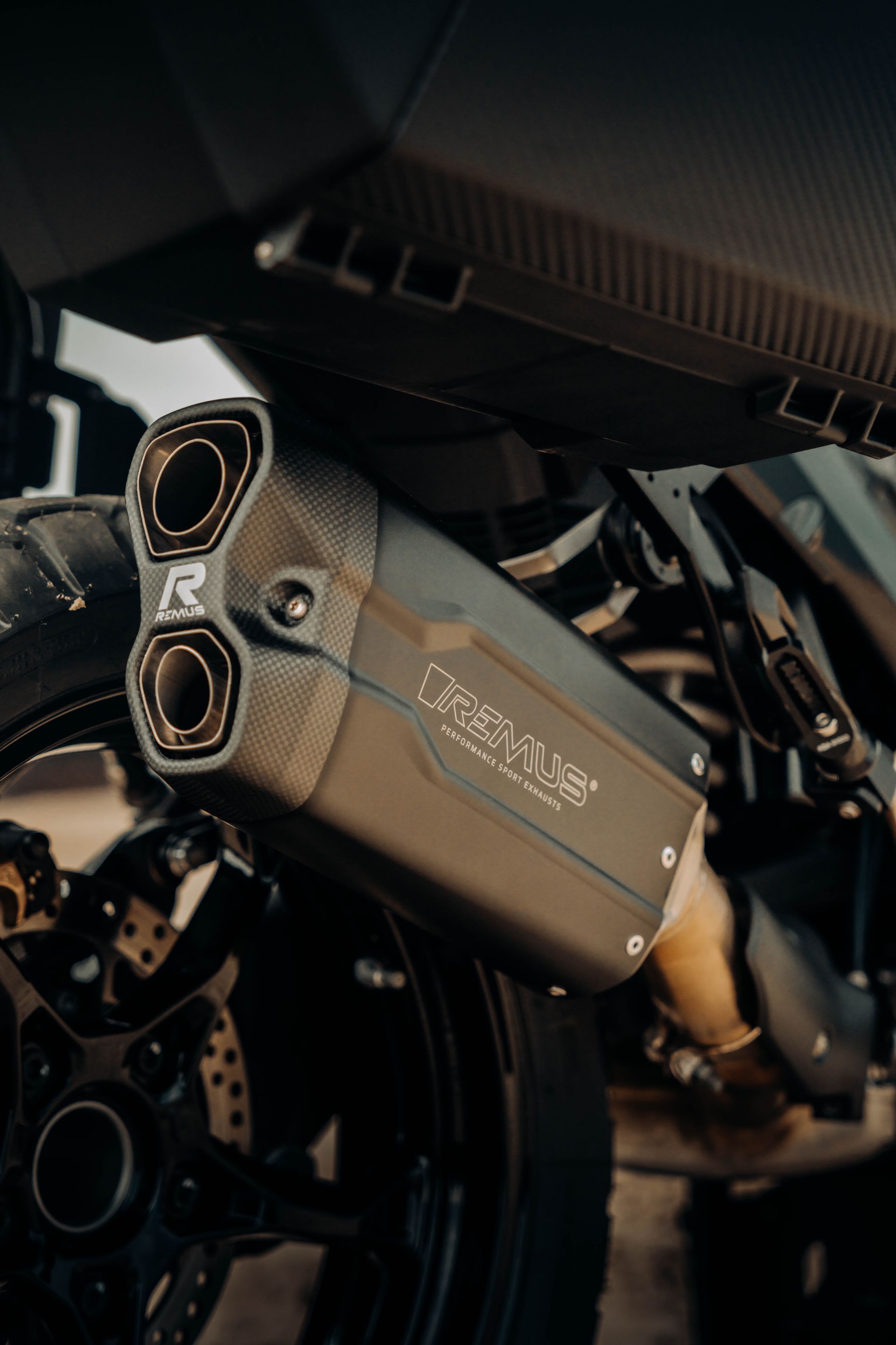 Remus Der Remus 8 2.0 Sportauspuff ist aus schwarzem Edelstahl gefertigt, die Endkappe besteht aus Kohlefaser. Eine echt beeindruckende Erscheinung, die dem Boxermotor nicht nur einen tieferen Bass entlockt, sondern auch für eine erhebliche Gewichtsreduzierung (-0,94 kg) und für noch bessere Werte auf dem Prüfstand sorgt. Dieser Aufbau ist sogar ECE-geprüft.