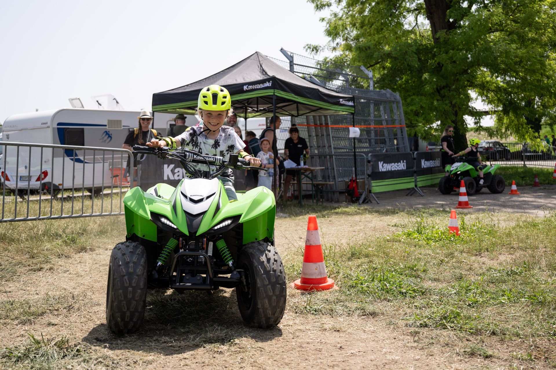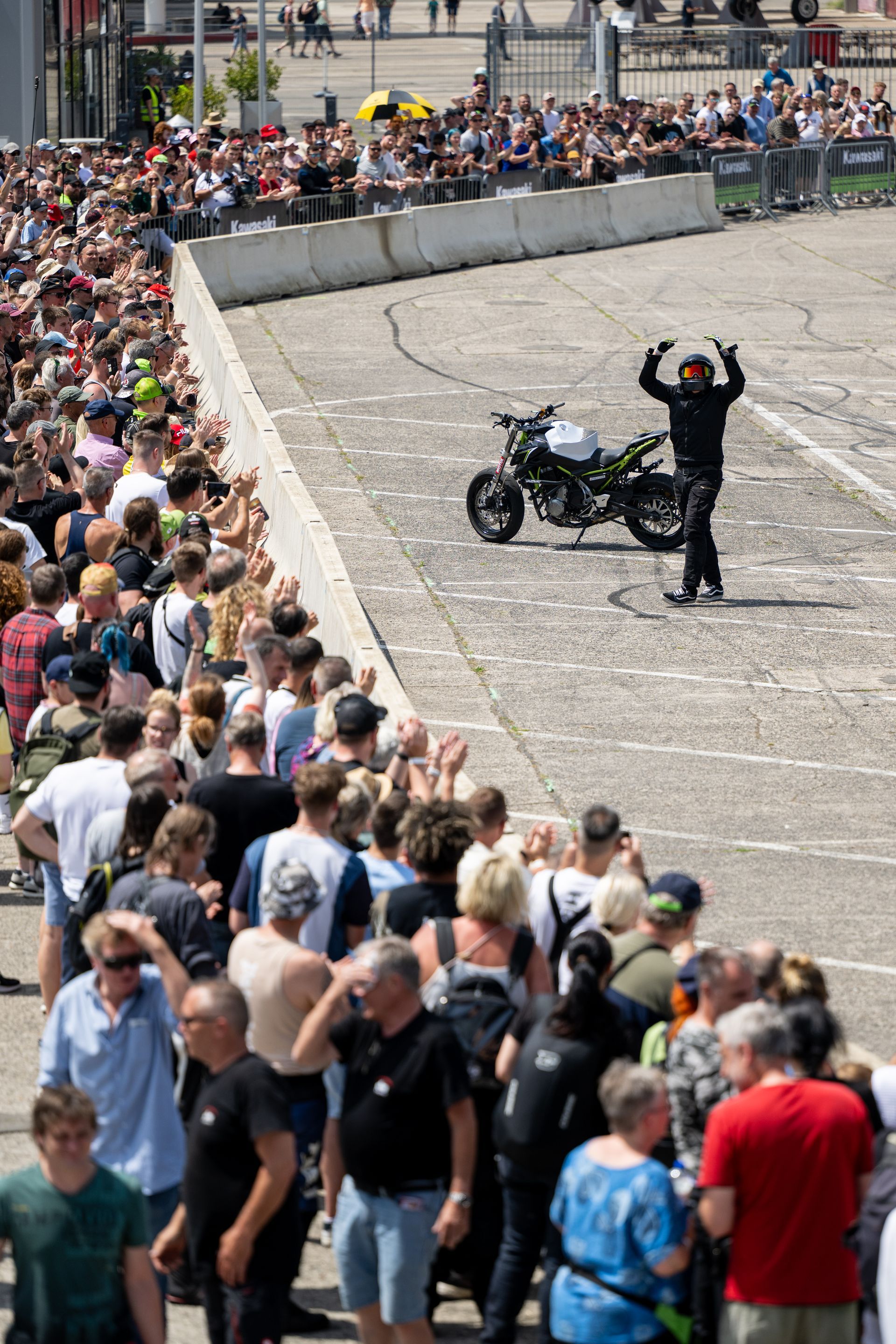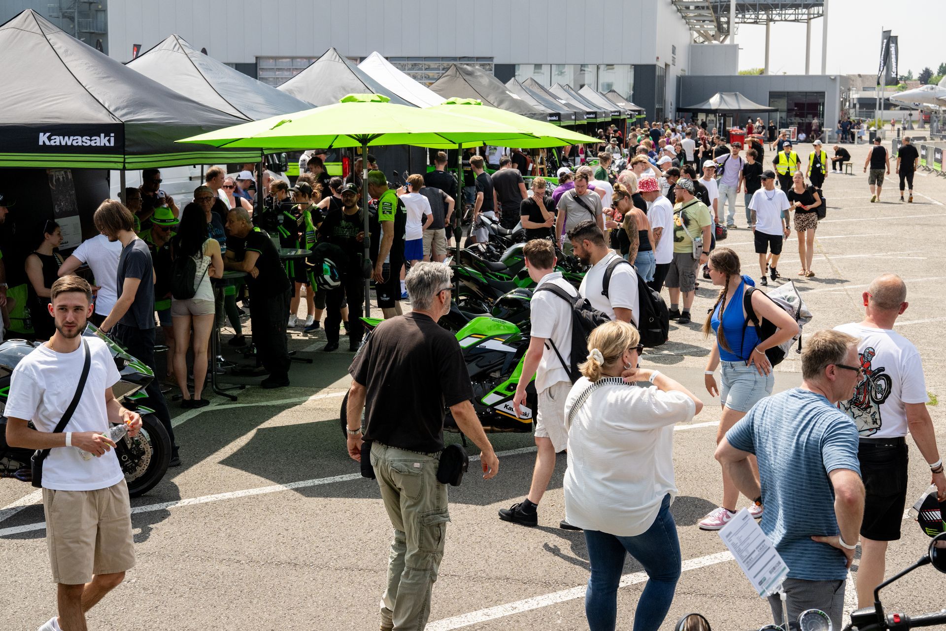 Darüber hinaus lädt eine große Händler- und Zubehörmeile mit zahlreichen Ausstellern zum Entdecken ein. Hier treffen Innovation, Individualisierung und Szene aufeinander – von neuesten Modellen über Custom-Bikes bis hin zu hochwertigem Zubehör. Dabei sind ausdrücklich alle Marken willkommen: Die Kawasaki Days verstehen sich als offenes, grünes Fest für die gesamte Motorrad-Community. Menschen, Maschinen und Emotionen verschmelzen zu einer einzigartigen Atmosphäre, die die Kawasaki Days Jahr für Jahr so besonders macht.
