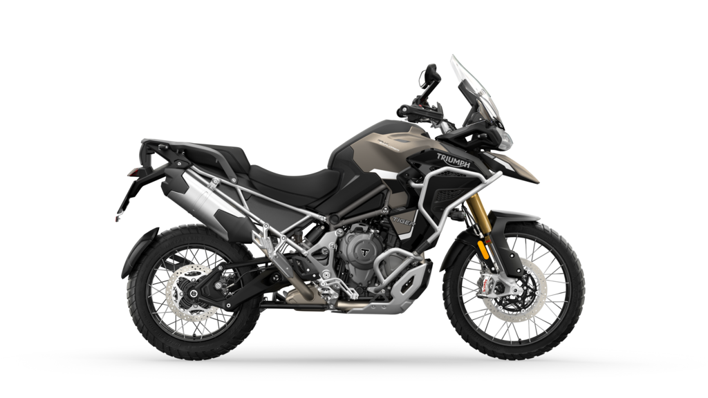 Die vier Modellvarianten der Tiger 1200 sind jetzt mit neuen Farben für 2024 erhältlich. Die straßenorientierten Tiger 1200 GT Pro und GT Explorer gibt es nun auch im auffälligen Carnival Red, zusätzlich zu den bisherigen Optionen Snowdonia White und Sapphire Black. Die offroad-optimierten Tiger 1200 Rally Pro und Rally Explorer, sind in den neuen, eleganten Farben Matt Sandstorm und Jet Black sowie in der beliebten Farbe Matt Khaki zu haben.