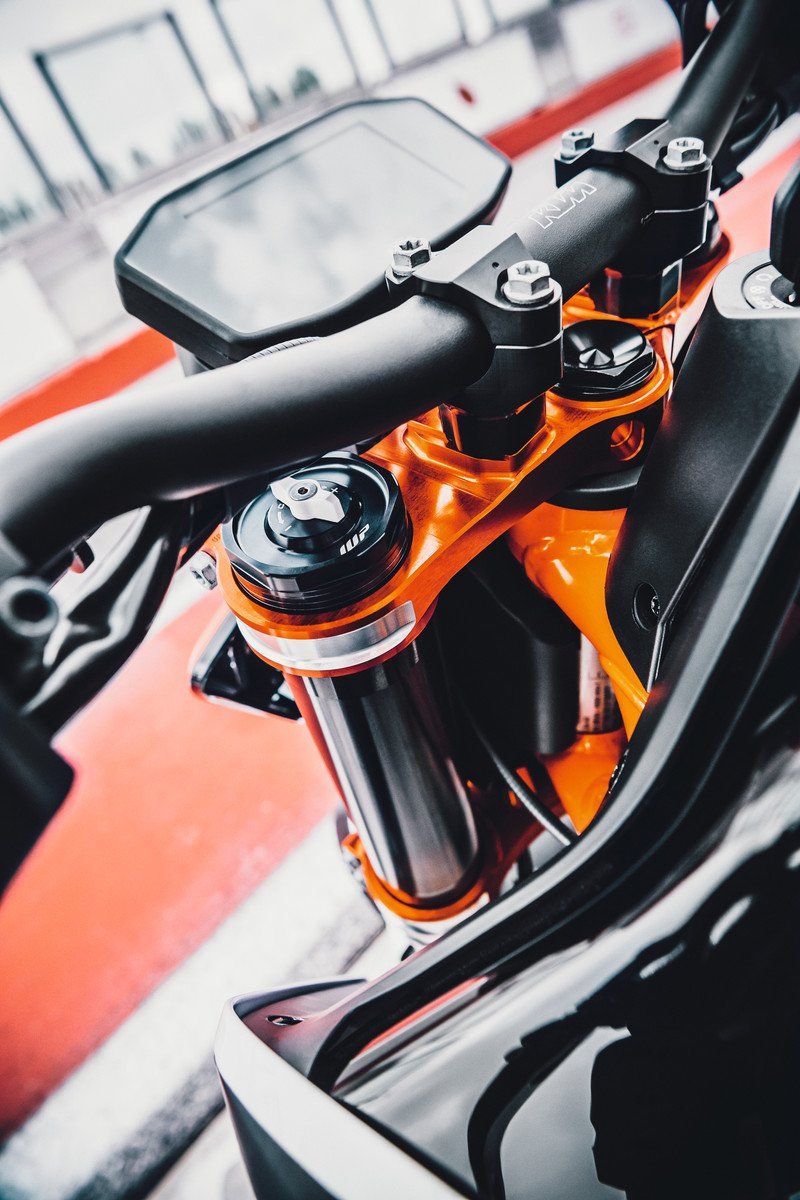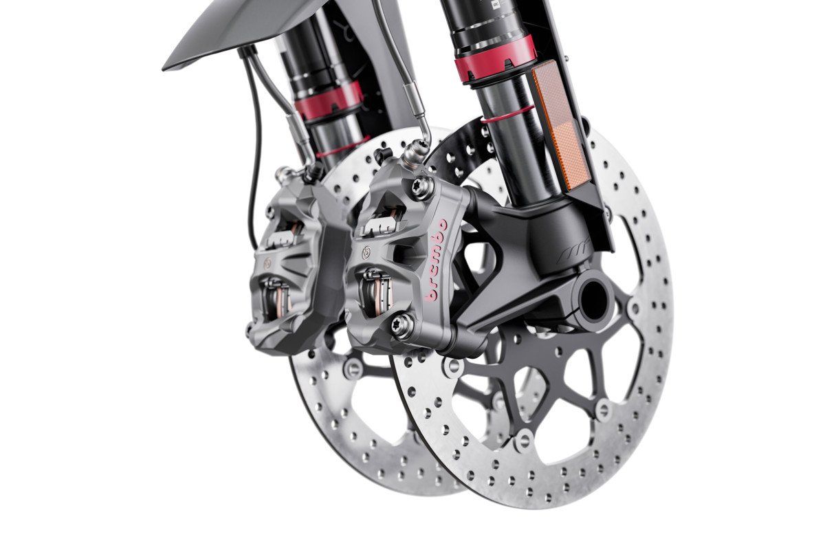 Bei der Bremsanlage greift KTM sogar zu allerfeinster Ware und montiert am Vorderrad nicht nur 32 cm-Bremsscheiben statt der 30er, sondern auch die besonders hochwertigen Stylema-Vierkolbenzangen der Top-Marke Brembo.