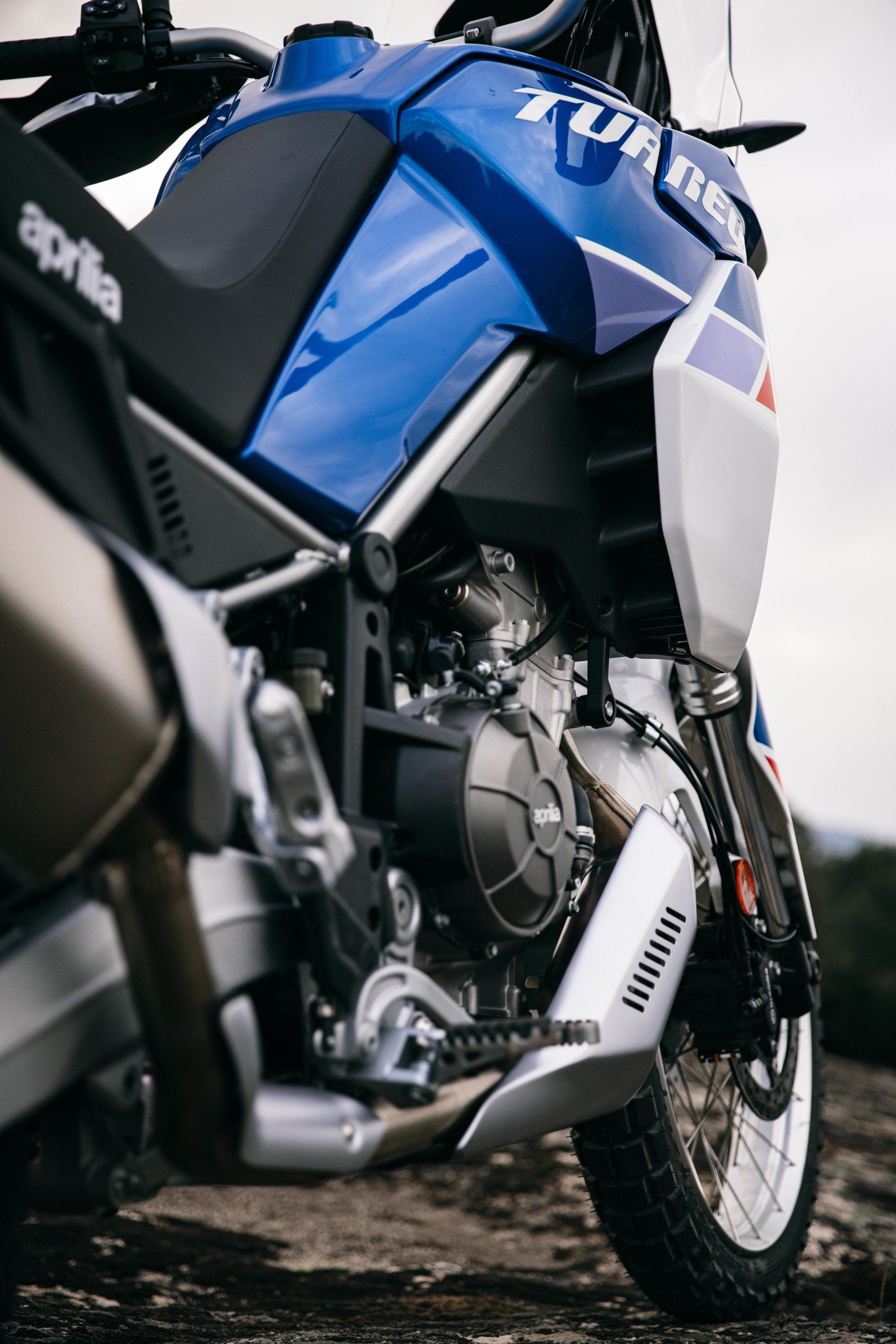 Doch spätestens beim Bremsen wird klar, dass reine Straßengummis deutlich höhere Kräfte zu übertragen in der Lage sind. Doch auf Schotterpisten oder ähnlichem unbefestigten Untergrund laufen sowohl die Pirellis als auch die Tuareg wieder zur Hochform auf. Mit großem Vertrauen ins Vorderrad lässt man es laufen und lenkt die Aprilia dank kurzer Übersetzung und drehfreudigem Twin locker mit dem Hinterrad. Nur übertreiben sollte man es nicht; denn die offiziell angegebenen 204 Kilogramm vollgetankt sind und bleiben 204 Kilogramm. Dennoch ist dieser Wert spitze; besagte Ténéré wiegt 207 Kilogramm, alle anderen Mitbewerberinnen noch einmal deutlich mehr.