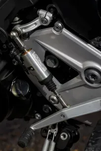 Das neu entwickelte Chassis arbeitet dabei erfreulicherweise wunderbar unaufgeregt, soll heißen es ist schön steif. Zudem lässt die einteilige Sitzbank dem Fahrer genug Bewegungsfreiraum, was die Handlichkeit der eh schon leichten Maschine (219kg fahrfertig) noch erhöht. Dabei nimmt die nicht einstellbare USD-Gabel einen Großteil der Straßenunebenheiten auf und ist wirklich niemals mit den Gegebenheiten überfordert, während man das ESA gesteuerte Federbein je nach Beladungszustand für eine straffe Hinterhand elektronisch anpassen kann.