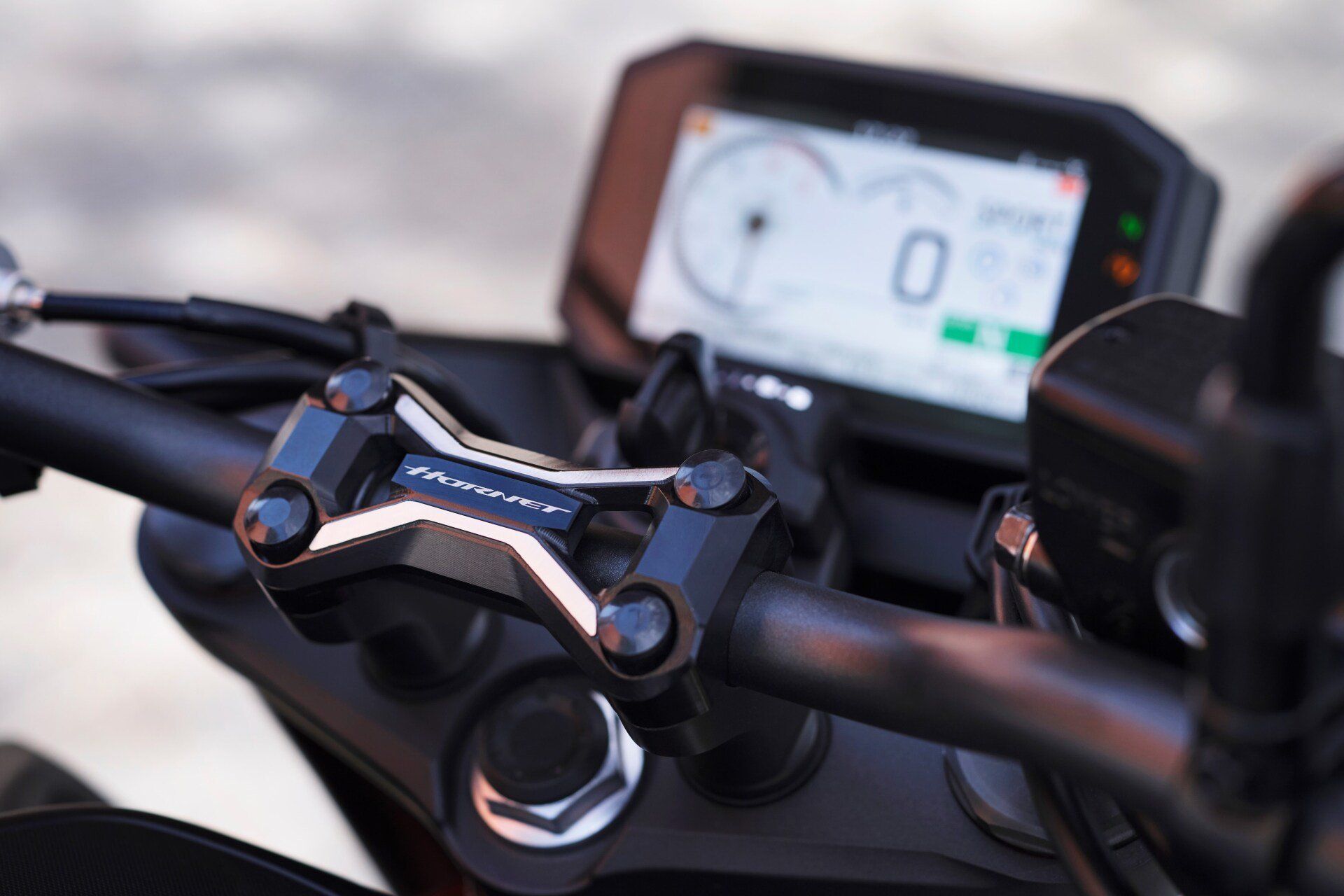 Der kompakte Parallel-Zweizylinder mit 755 cm3 Hubraum glänzt mit 92 PS (67,5 kW) Spitzenleistung bei 9.500 U/min und 75 Nm Drehmoment. Fahrfertig vollgetankt wiegt die neue CB750 Hornet lediglich 190 kg.
