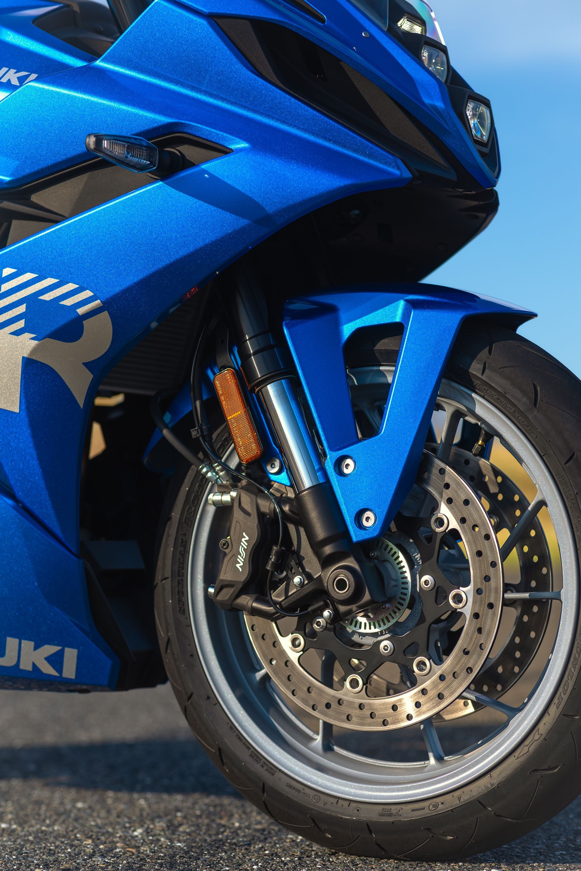 Vom messerscharfen, klar konturierten Design der Frontpartie mit den beiden senkrecht angeordneten hexagonalen LED-Scheinwerfern über die aerodynamisch optimierte Vollverkleidung bis hin zur schlanken Anmutung der sportlich knappen Heckpartie passt sich jedes Detail der Suzuki GSX-8R ihrem dynamischem Grundkonzept an. Aufwendige Windkanalversuche spiegeln sich in einem niedrigen Luftwiderstandsbeiwert, einer angenehm leisen Geräuschkulisse sowie exzellenter Hochgeschwindigkeitsstabilität wider.