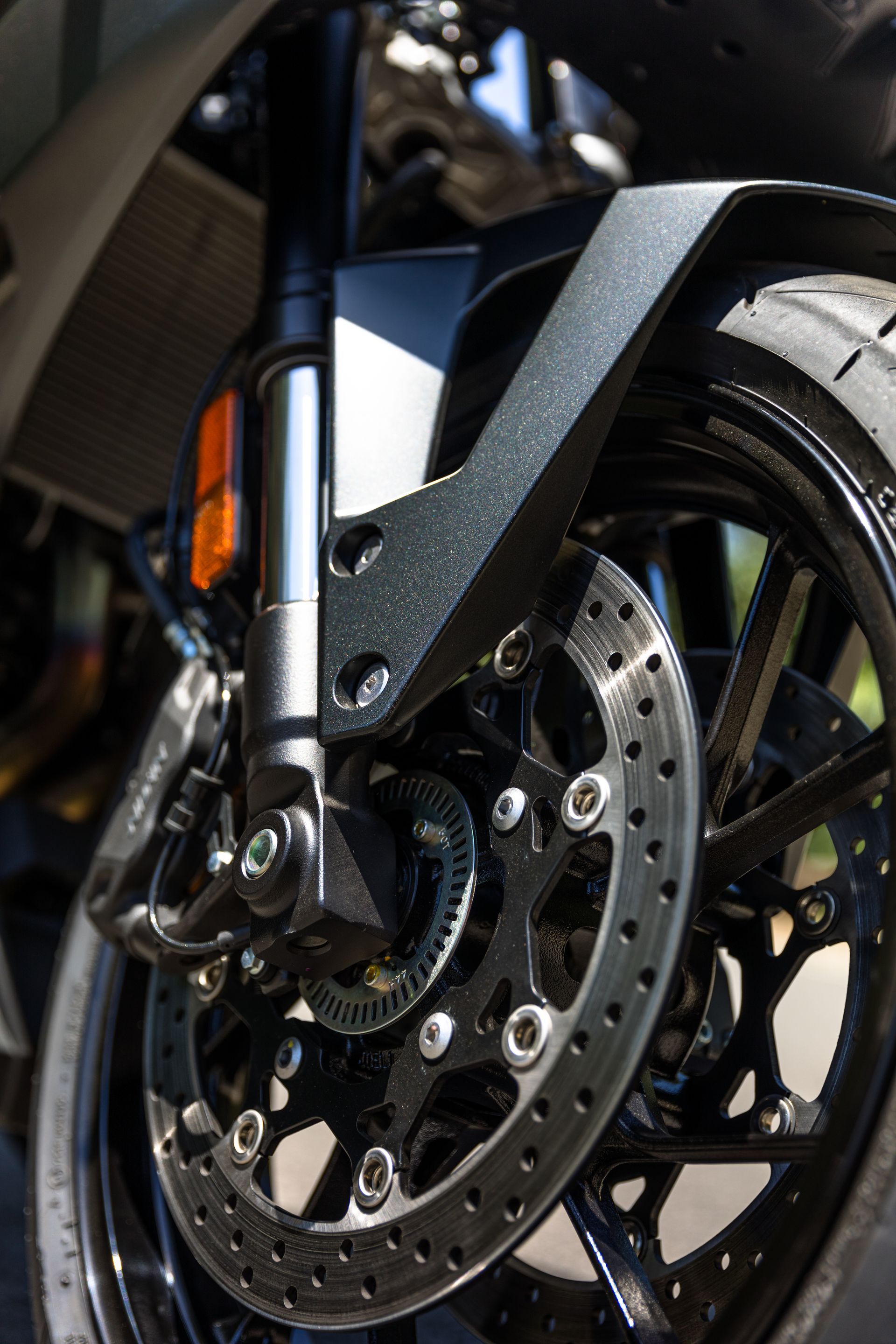 Das Display ist auch bei schwierigen Lichtverhältnissen gut ablesbar und informiert in übersichtlichem Layout über alle Funktionen und Einstellungen der Maschine sowie die aktuellen fahrdynamischen Werte. Der Drehzahlmesser verfügt über einen programmierbaren Schaltblitz, der den idealen Zeitpunkt für einen Gangwechsel signalisiert.