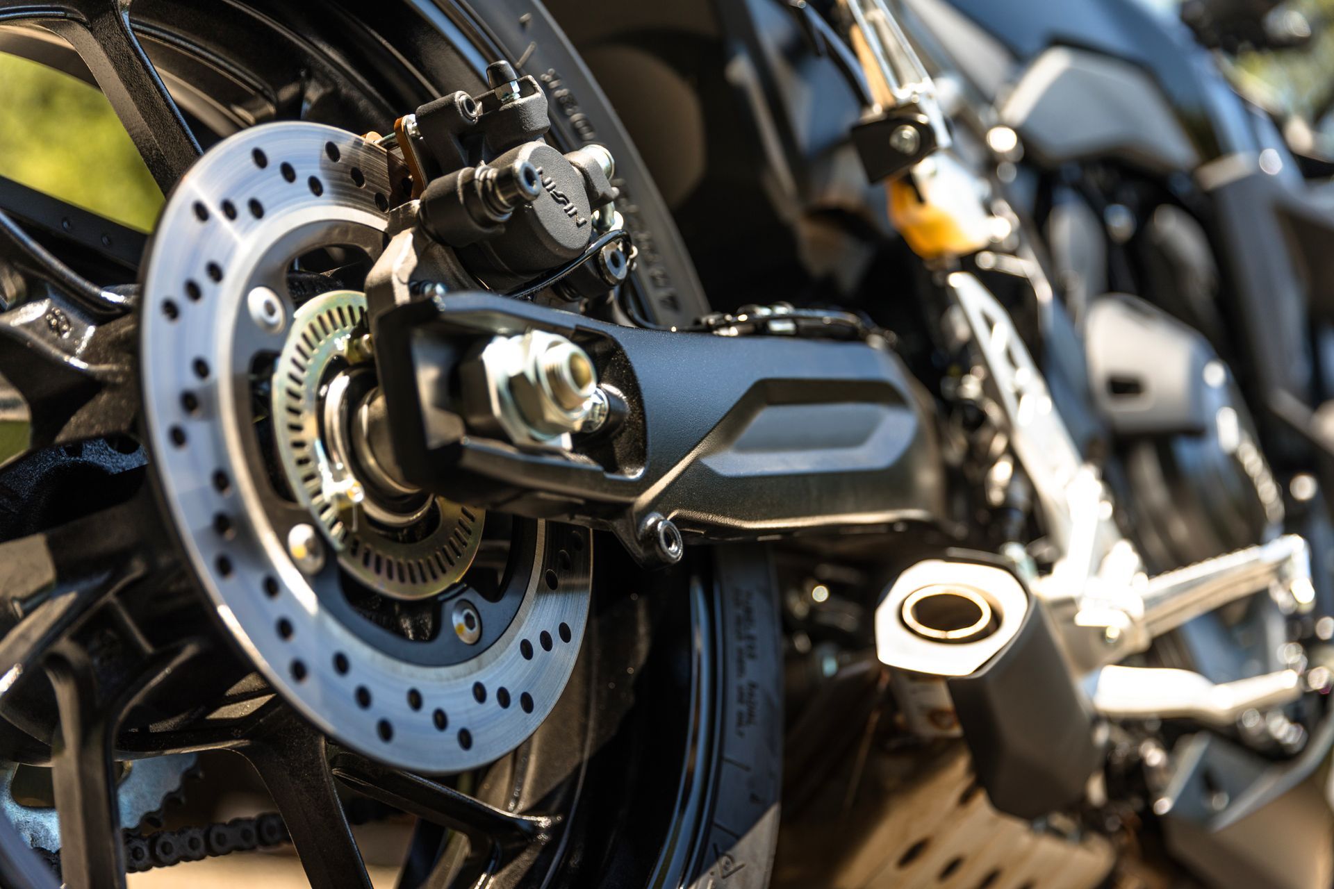 Die Upside-Down-Gabel von SHOWA spricht fein an, während die Federrate und die sorgfältig abgestimmte Dämpfungscharakteristik auf ein breites Einsatzspektrum von sportlicher Fahrweise bis Alltagsbetrieb ausgelegt sind. Ebenso wie zum sensiblen Ansprechverhalten des Zentralfederbeins trägt die einzigartig geformte, leichte Aluminiumschwinge zur Spurtreue der Suzuki GSX-8R bei.