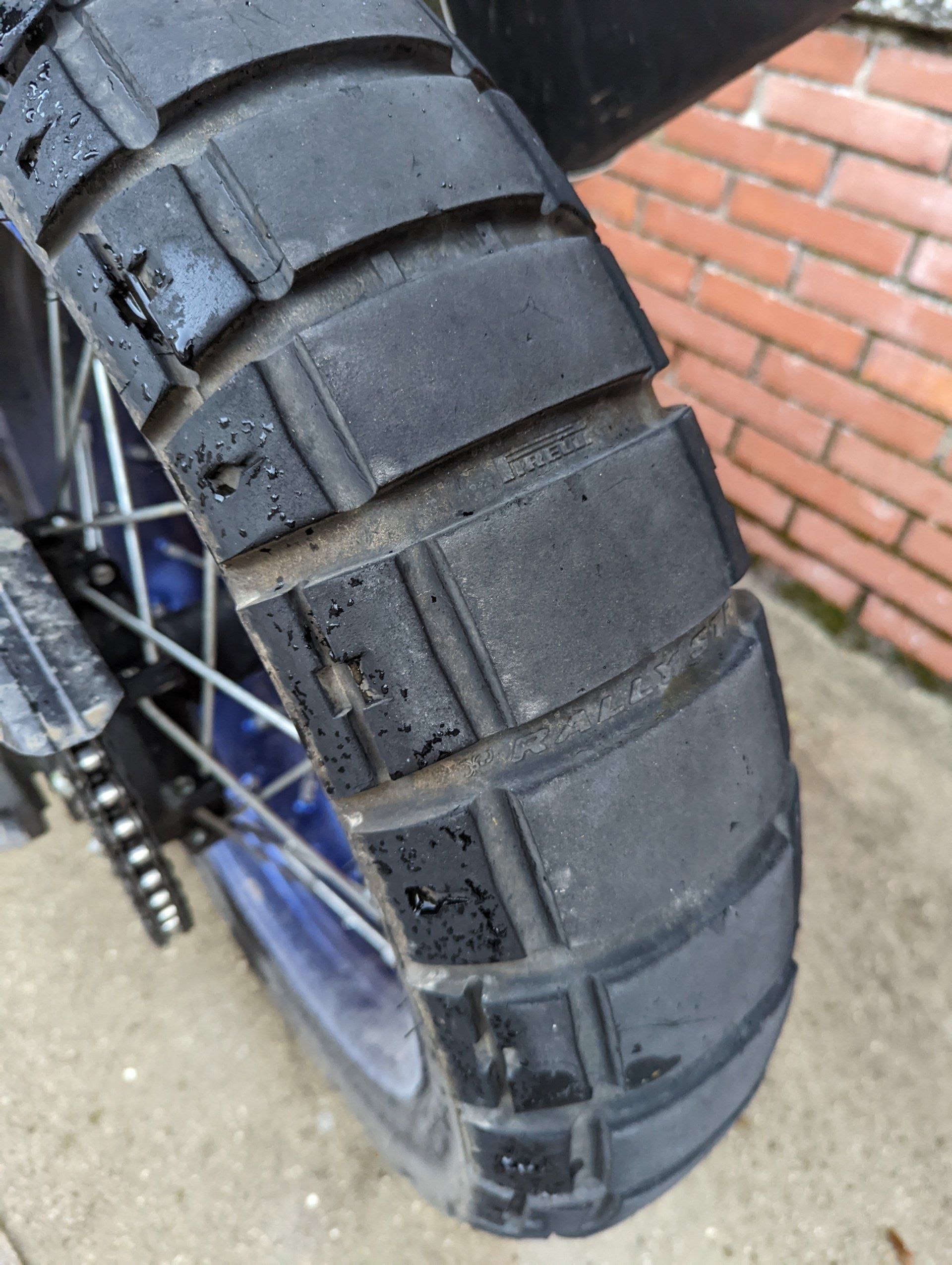 An dieser Stelle möchte ich dann noch lobend die montierten Reifen erwähnen. Die Pirelli Scorpion Rally STR machten durchweg einen tollen Job! Es sind keine Stollenreifen, aber doch grob genug, um im Gelände gute Traktion zu bieten. Zumindest solange es dort einigermaßen trocken ist. Naturgemäß braucht es ein sehr grobes Profil, dass sich bei Nässe (Matsch) nicht alles zusetzt und eben dort liegt bei dem Rally STR auch definitiv seine Grenze. Solange das nicht der Fall ist, kommt man mit dem Pneu eigentlich überall gut durch. Auch auf der Straße hat mich das Gummi absolut überzeugt! Ich bin selten einen so profilierten Reifen ohne irgendwelche gefühlten Unsicherheiten bis zur Reifenkante runtergefahren. Sowohl mit der Ténéré als auch mit dem Scorpion Rally STR kann man auf Asphalt ganz ordentlich angasen.