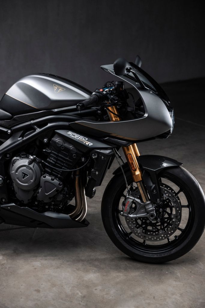 Die Speed Triple 1200 RR ist für ihre hohe Performance bekannt und beeindruckt mit ihrem semiaktiven Öhlins-Fahrwerk, der rennstreckentauglich-sportlichen Ausstattung mit vielen edlen Komponenten sowie der klassisch gestalteten Cockpitverkleidung, die den charakteristischen runden Einzelscheinwerfer hervorhebt.