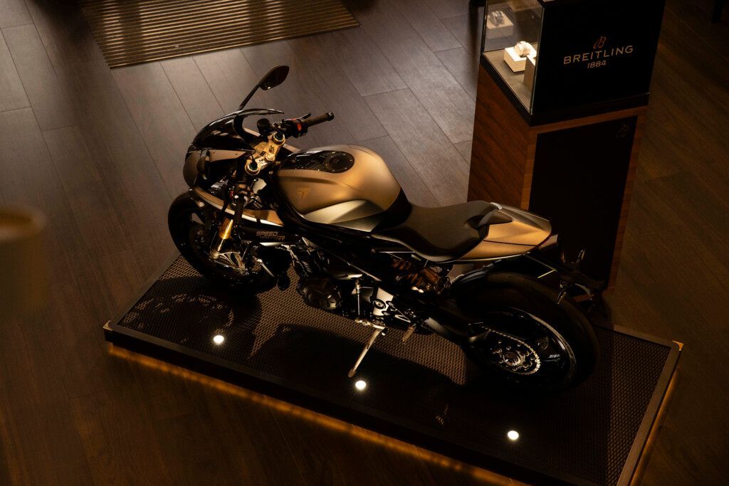 Nick Bloor, CEO von TRIUMPH, sagt: „Indem wir uns mit Breitling zusammengetan haben, haben wir zwei Welten vereint und unsere gemeinsame Leidenschaft für Präzision, Geschwindigkeit und erstklassigen Stil zum Ausdruck gebracht.“
