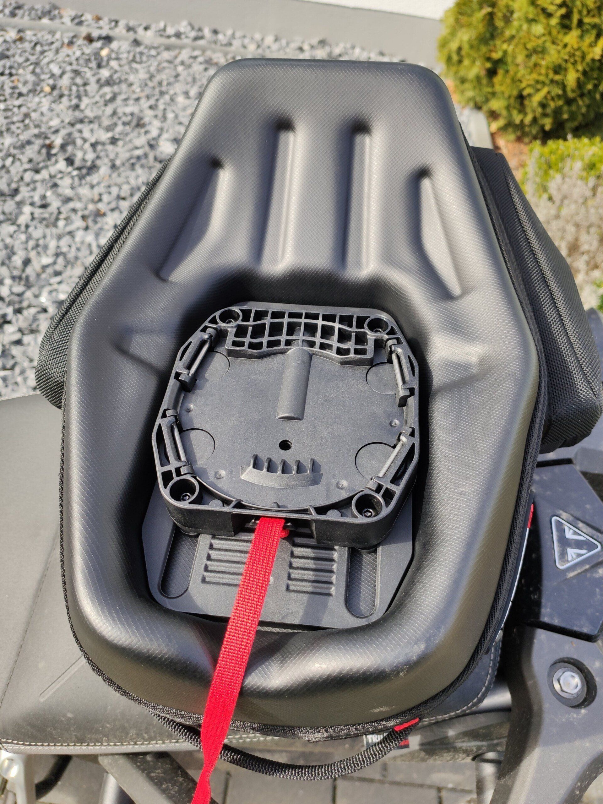 Nicht ganz so schöne: Wenn man einen Tankrucksack montieren möchte (wir hatten ein QuickLock-System von SW-Motech zur Verfügung), muss dieser einen ganz ordentlichen Abstand zum Lenker halten, da sich zwischen Tankstutzen und Lenker das Zündschloss befindet. Oder man muss den Tankrucksack entnehmen, bevor man an den Zündschlüssel möchte.