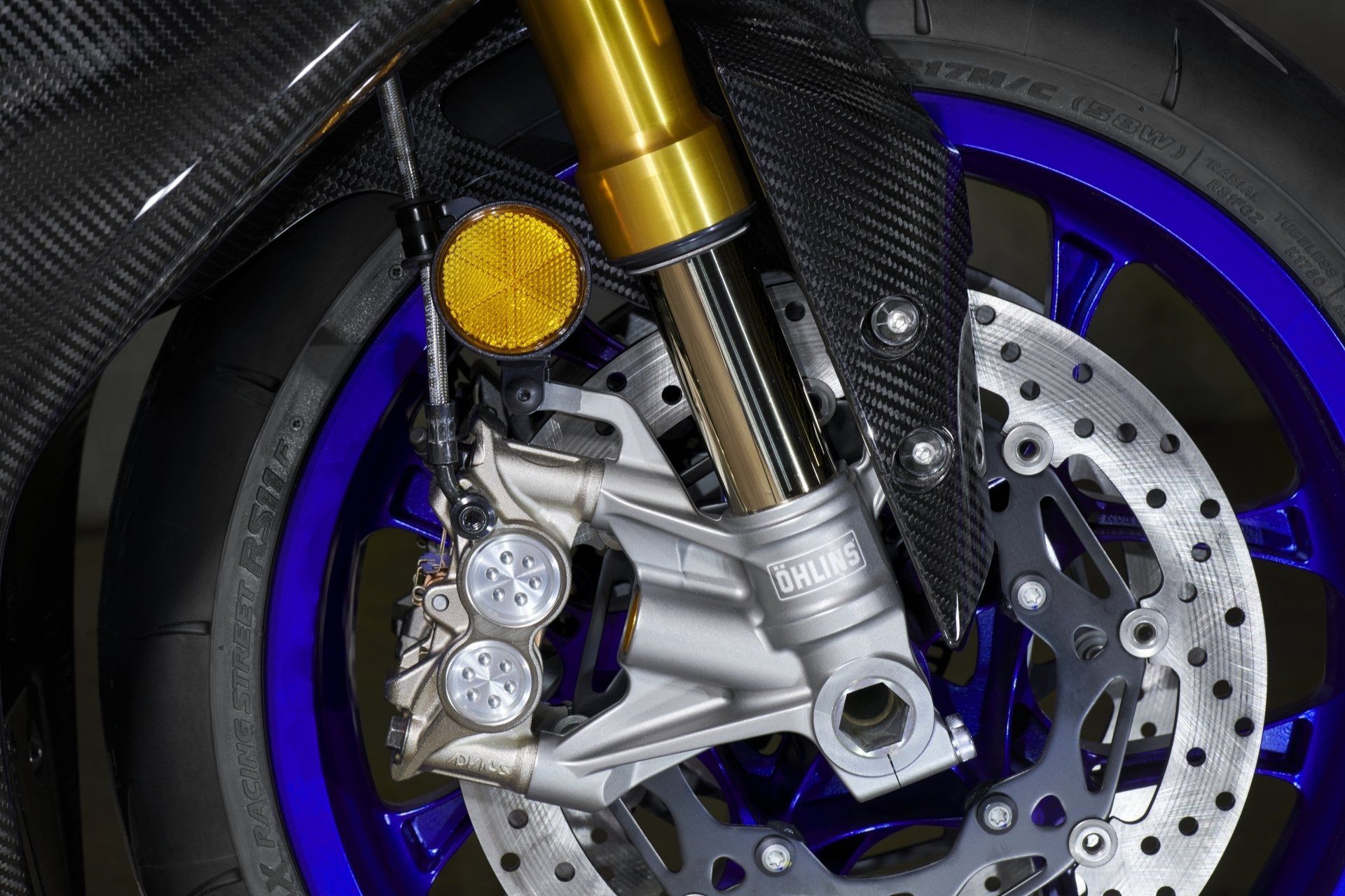 Hochmodernes elektronisches Öhlins Racing Fahrwerk (ERS) Exklusives Design mit Kohlefaser -Verkleidungen und polierten Komponenten Frontkotflügel aus Kohlefaser Kommunikationseinheit (Communication Control Unit - CCU) mit drahtloser Schnittstelle Crossplane-Reihenvierzylinder-Motor mit 147 kW (200 PS) und 998 ccm Hubraum Sensorcluster mit dreidimensional messenden Beschleunigungs- und Drehratensensoren Power-Delivery-Modi (PWR) Quick-Shift System (QSS) Schräglagenabhängige Traktionskontrolle (TCS)/Rutschkontrolle (SCS) Wheelie-Steuerung (LIF) und Launch Control System (LCS) Deltabox-Aluminium-Rahmen ermöglicht kurzen Radstand Im oberen Bereich verstärkte Schwinge Rahmenheck aus Magnesium Exklusive Einladung zu den europäischen YRE-Veranstaltungen
